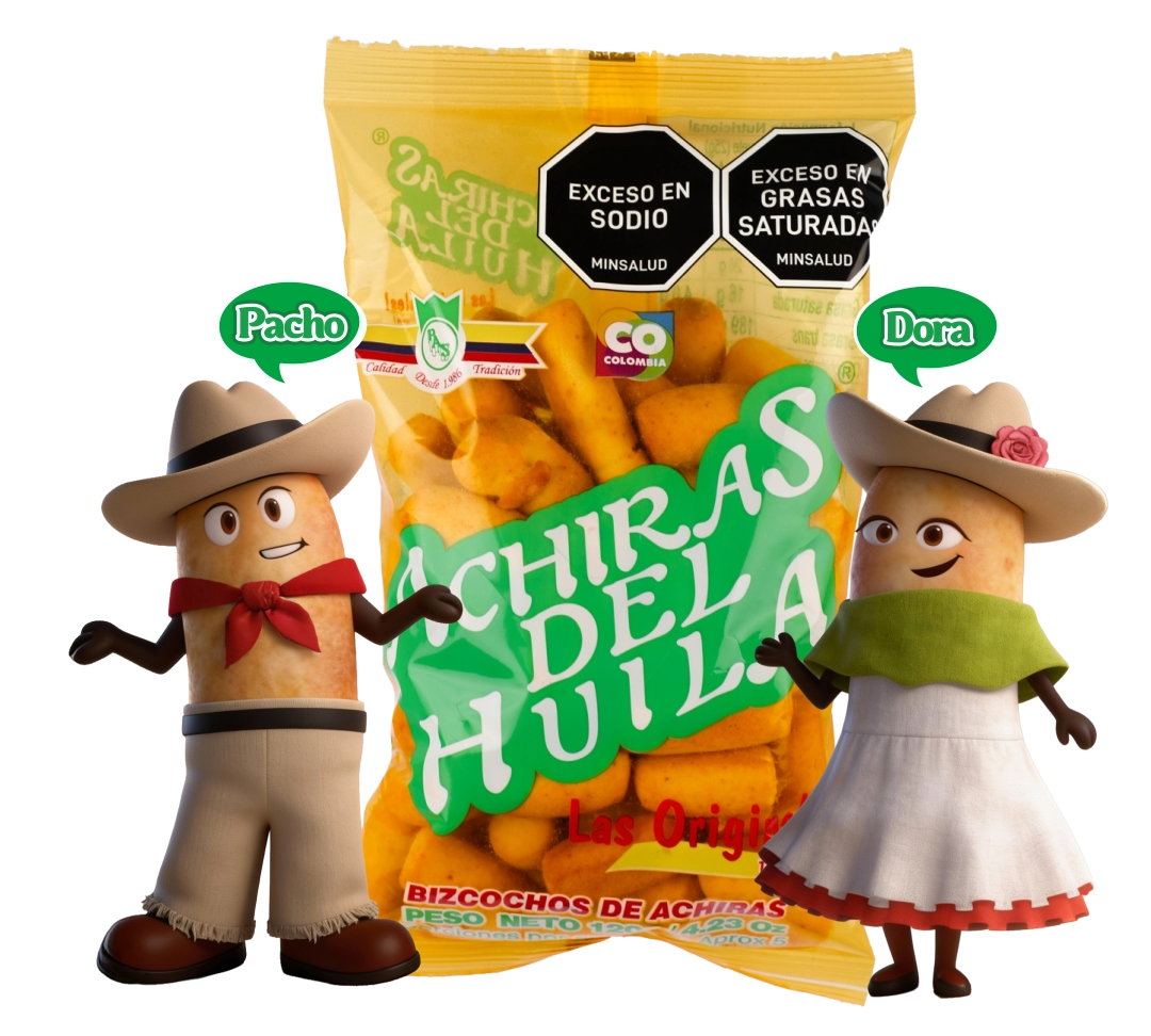 Achiras del Huila es un producto típico colombiano del departamento de Huila y nos elaboran artesanalmente mediante el proceso de mezclas y horneado. Nuestros principales ingredientes son almidón de achiras, cuajada, yemas de huevo, mantequilla y sal.